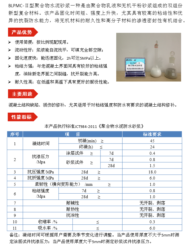BLPMC-Ⅱ聚合物水泥砂浆 Sun, 21 Dec 2025 11:42:09 +0800