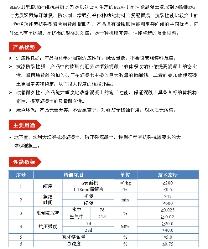 BLEA-Ⅲ 膨胀纤维抗裂防水剂 Sun, 21 Dec 2025 11:42:09 +0800